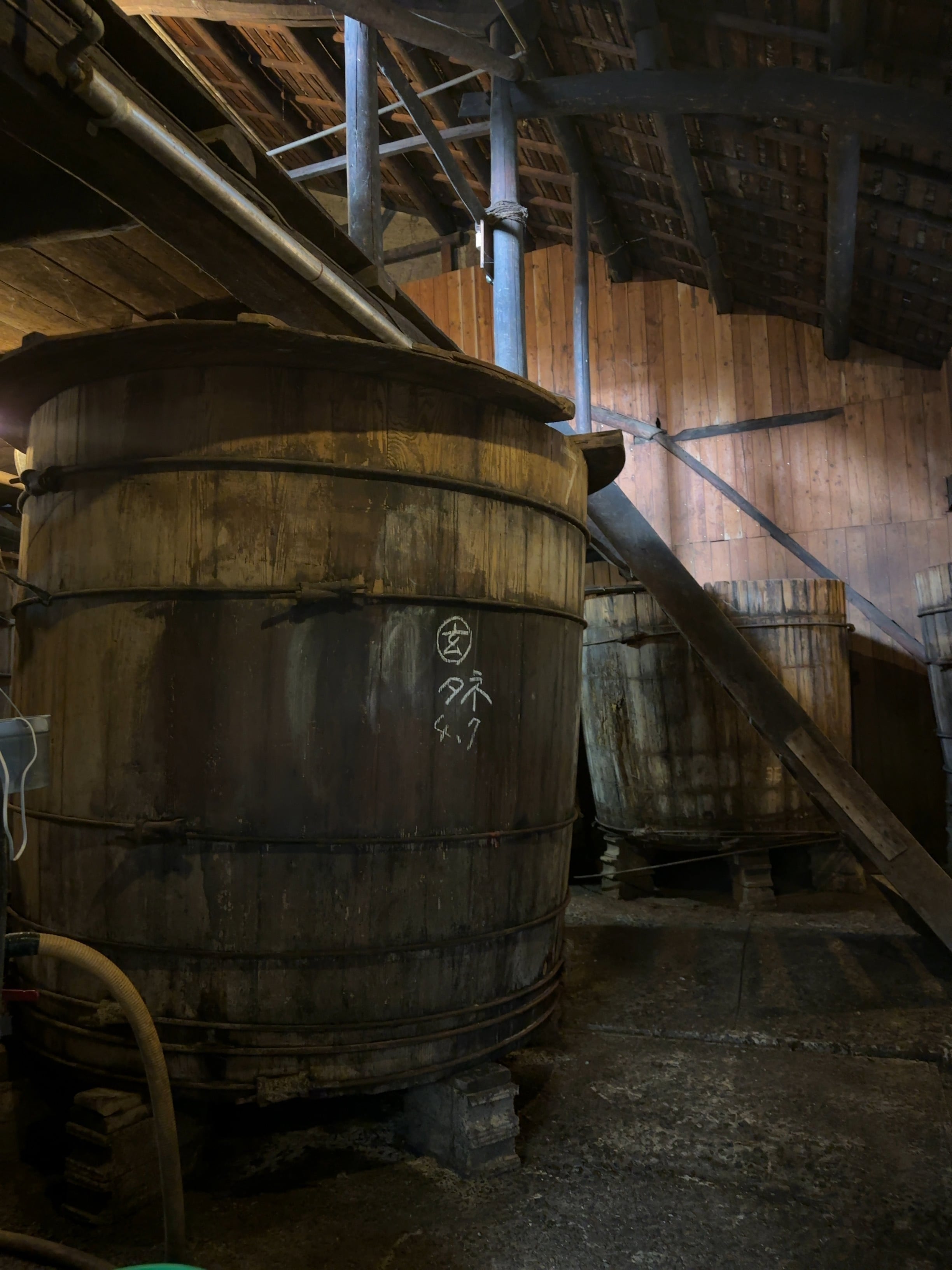 木造りの蔵に息づく蔵付き菌と吉野杉大樽。